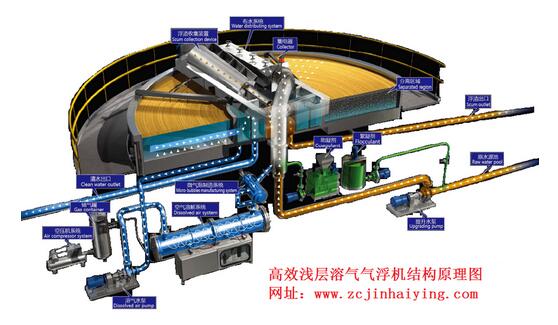 超效淺層溶氣氣浮機三維立體工作原理圖: