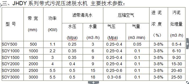 n 注:1 .上表中的型號是本公司通常生產(chǎn)的帶式污泥脫水機(jī)型號,還可以根據(jù)用戶需要生產(chǎn)其它型號的帶式污泥脫水機(jī);